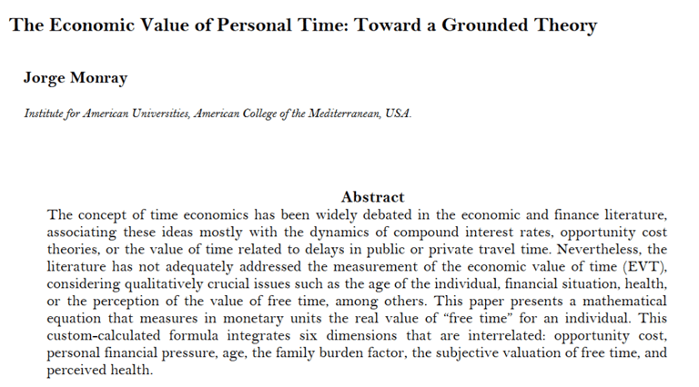 Monray, J. (2025). The Economic Value of Personal Time: Toward a Grounded Theory. International Journal of Independent Research Studies, 14(5), 33–46