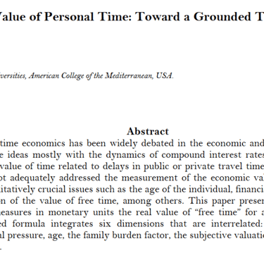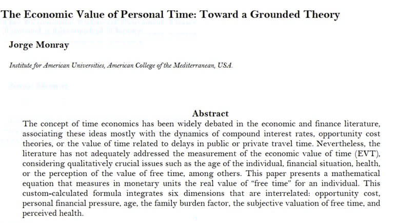 Monray, Jorge, The Economic Value of the Personal Time - A Grounded Theory (December 16, 2025). International Journal of Independent Research Studies, volume 14, issue 5, 2025 DOI [10.55220/2304-6953.v14i5.827, Available at SSRN: https://ssrn.com/abstract=5931375 or http://dx.doi.org/10.55220/2304-6953.v14i5.827